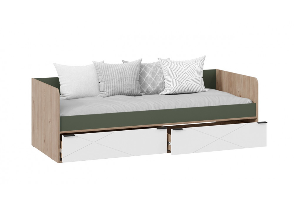 Кровать (с ящиками) «Лео» - ТД-410.12.01 Гикори джексон/Белый матовый/Дымчатый зеленый
