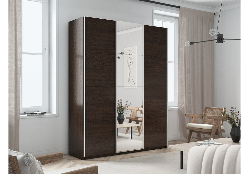 Шкаф-купе Прайм 3-х дверный (ЛДСП/Зеркало/ЛДСП) Венге